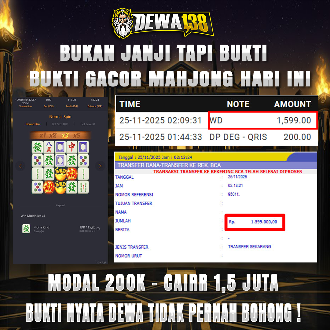 Cek sendiri DEWA138 tempat game jackpot dalam waktu singkat cuma di sini depo 200k bisa withdraw 1,5+ juta Sudah di kasih bukti bukan janji yakin ga main?Rugi Dong!
